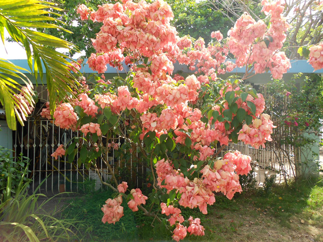 The gardens feature a huge variety of plants and flowering bushes from Heliconias, Ginger, and various Palms, to Orchids, Birds of Paradise, Bougainvilleas,and Hibiscus. Plus eatibles: Limon, Bananas, Oranges !