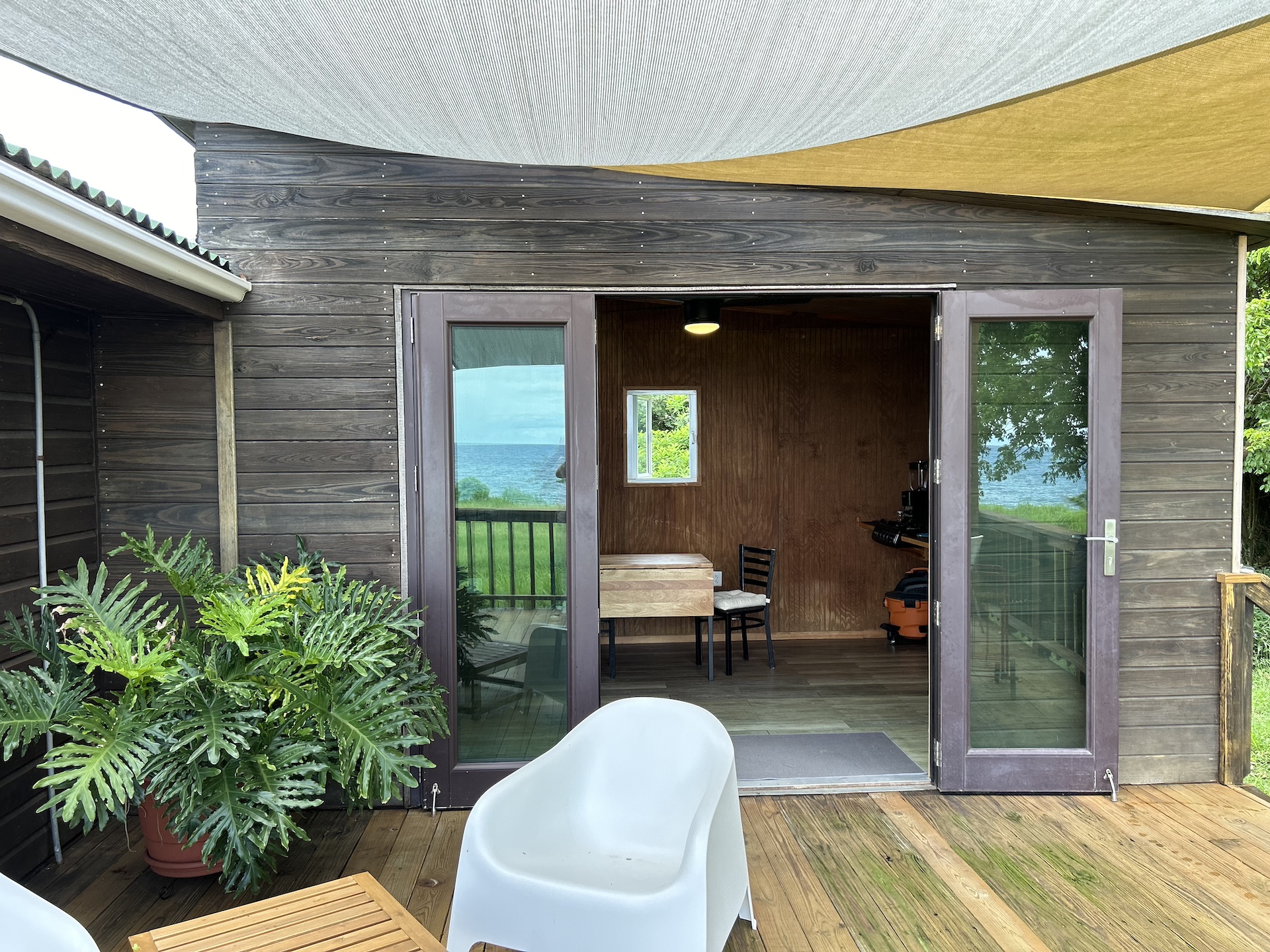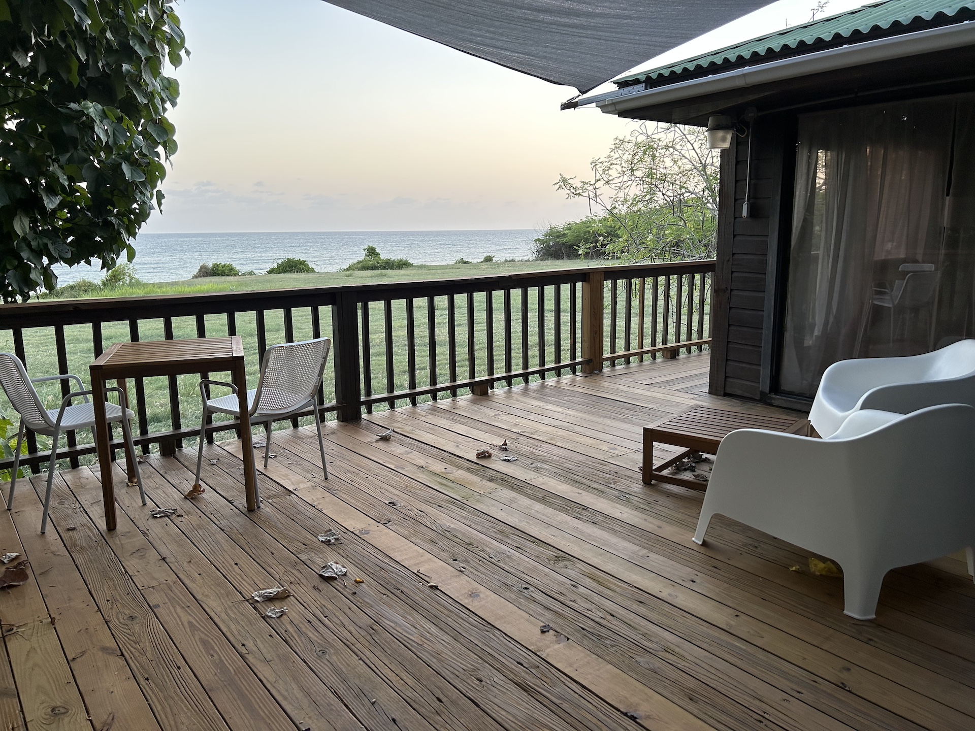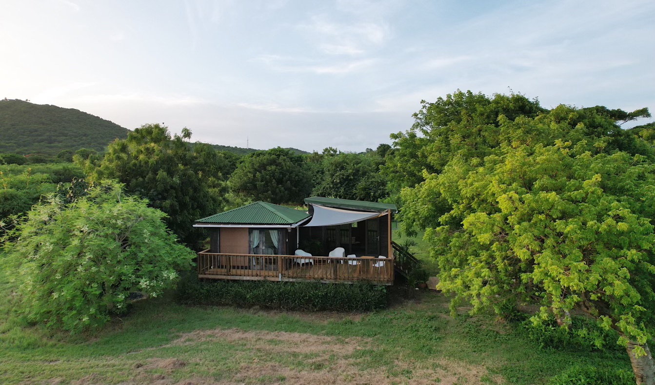 Ataraxia Playa Negra is located on a five acre hacienda overlooking Black Sand Beach. A serene and comfortable ocean front dwelling with modern amenities. It accommodates two adults in an open, one bedroom tiny house. The grand views of the Caribbean Sea, the Iconic Black Sand Beach & the half cove next to Rio Urbano’s river mouth, with all it’s natural bounty, are part of the experience of a private setting, perched 30 feet above sea level. It is the singular Vieques experience..!
